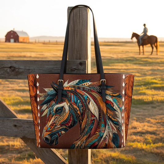 Tribal Horse Majesty Leather Tote Bag
