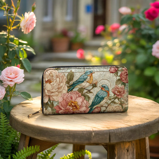 Leather Wallet With Wristlet Strap Handle Sunflower Farm Breeze