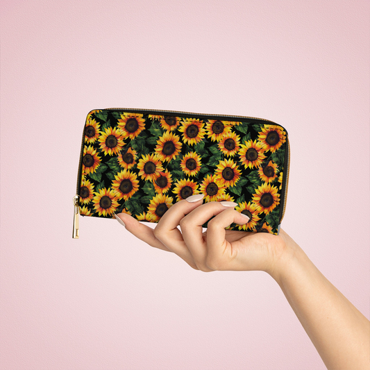 Leather Wallet With Wristlet Strap Handle Sunflower Bliss