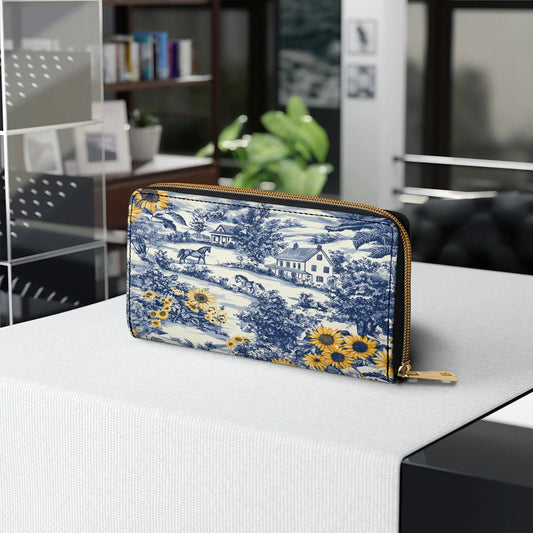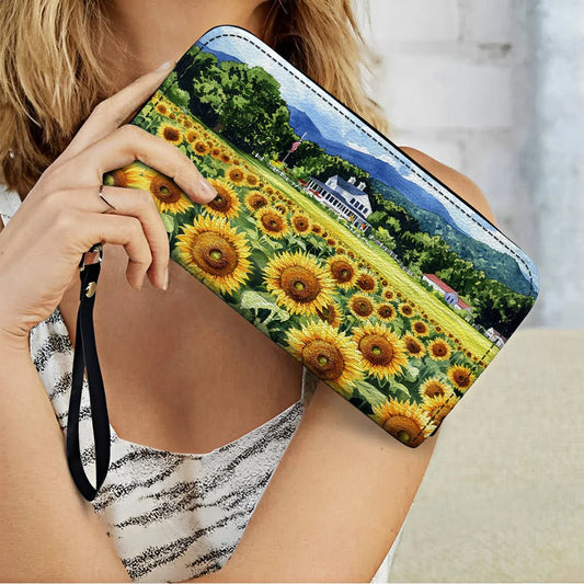 Leather Wallet With Wristlet Strap Handle Sunflower Farmhouse Glory