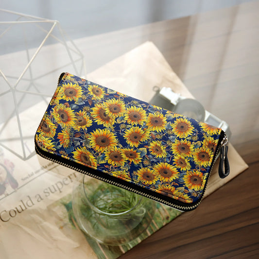 Leather Wallet With Wristlet Strap Handle Sunflower Gorgeous Flower