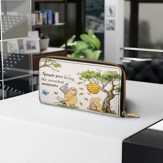 Leather Wallet With Wristlet Strap Handle Sunny Days with Pooh