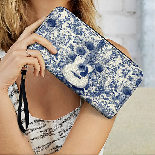 Leather Wallet With Wristlet Strap Handle Sunflower Melody