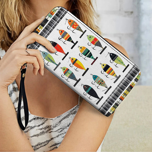 Leather Wallet With Wristlet Strap Handle Vintage Fishing Lures