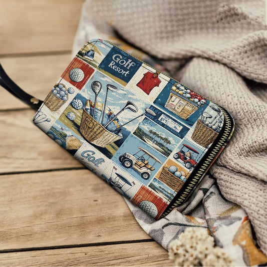 Leather Wallet With Wristlet Strap Handle Vintage Golf Dreams