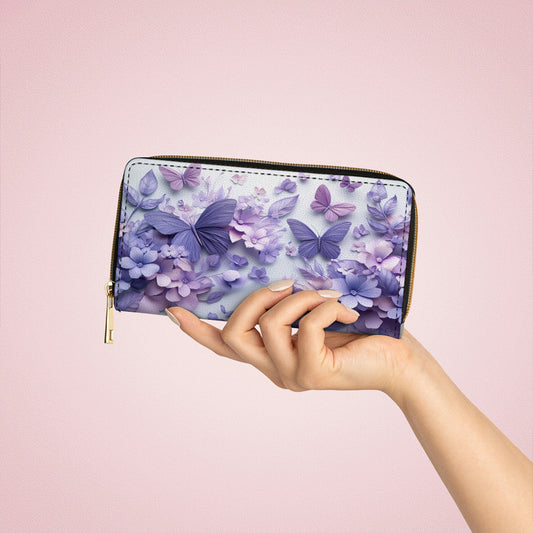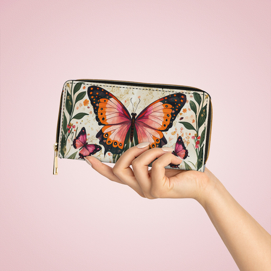Leather Wallet With Wristlet Strap Handle Wings Over Blooms