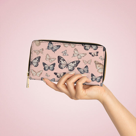 Leather Wallet With Wristlet Strap Handle Winged Elegance