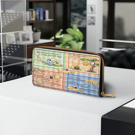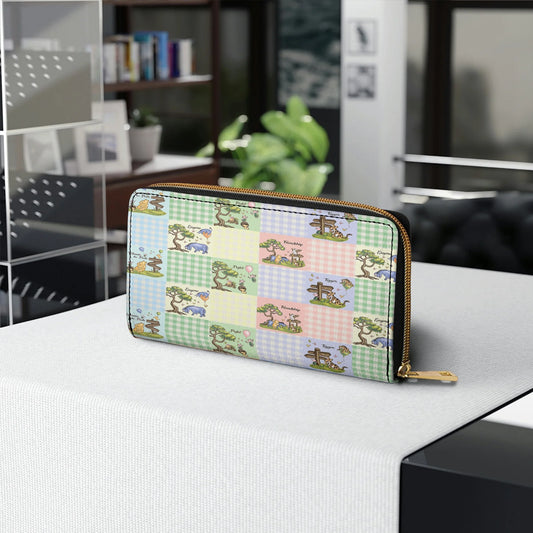 Leather Wallet With Wristlet Strap Handle Winnie the Pooh Patchwork Bliss