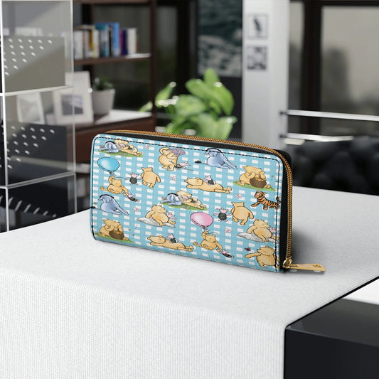 Leather Wallet With Wristlet Strap Handle Winnie the Pooh Picnic