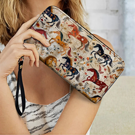 Leather Wallet With Wristlet Strap Handle Wild Gallop