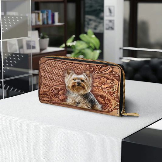 Leather Wallet With Wristlet Strap Handle Yorkie Elegance