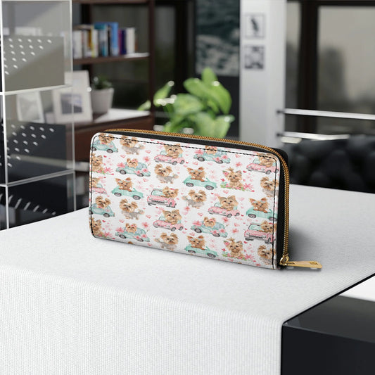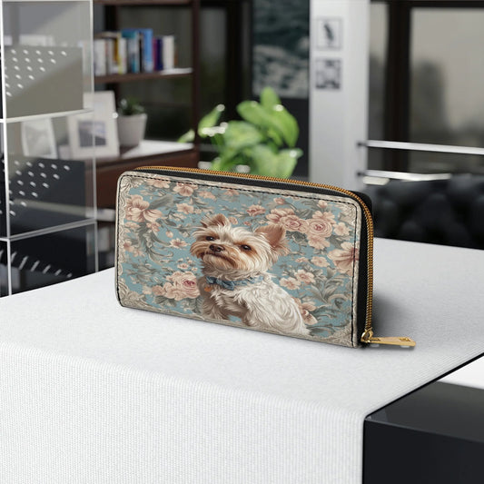 Leather Wallet With Wristlet Strap Handle Yorkie Blossom Elegance