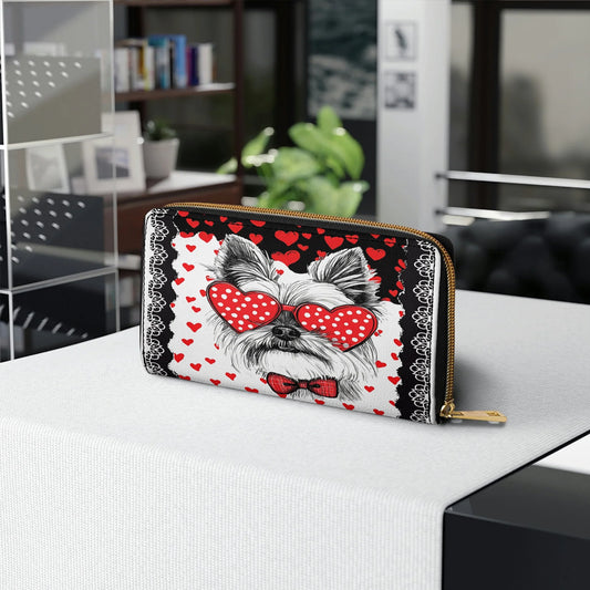 Leather Wallet With Wristlet Strap Handle Yorkie Heart & Paws Love