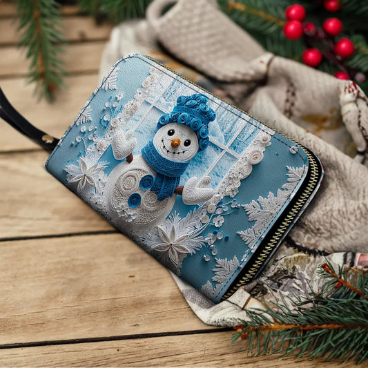 Leather Wallet With Wristlet Strap Handle Winter Wonder