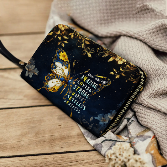 Leather Wallet With Wristlet Strap Handle You Are My Mother