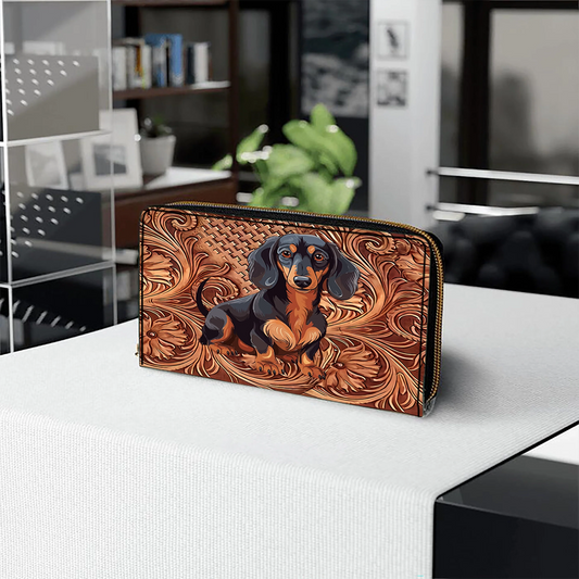 Strength Dachshunds Leather Wallet With Wristlet Strap Handle