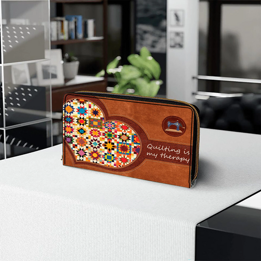 Quilting Is My Therapy Leather Wallet With Wristlet Strap Handle